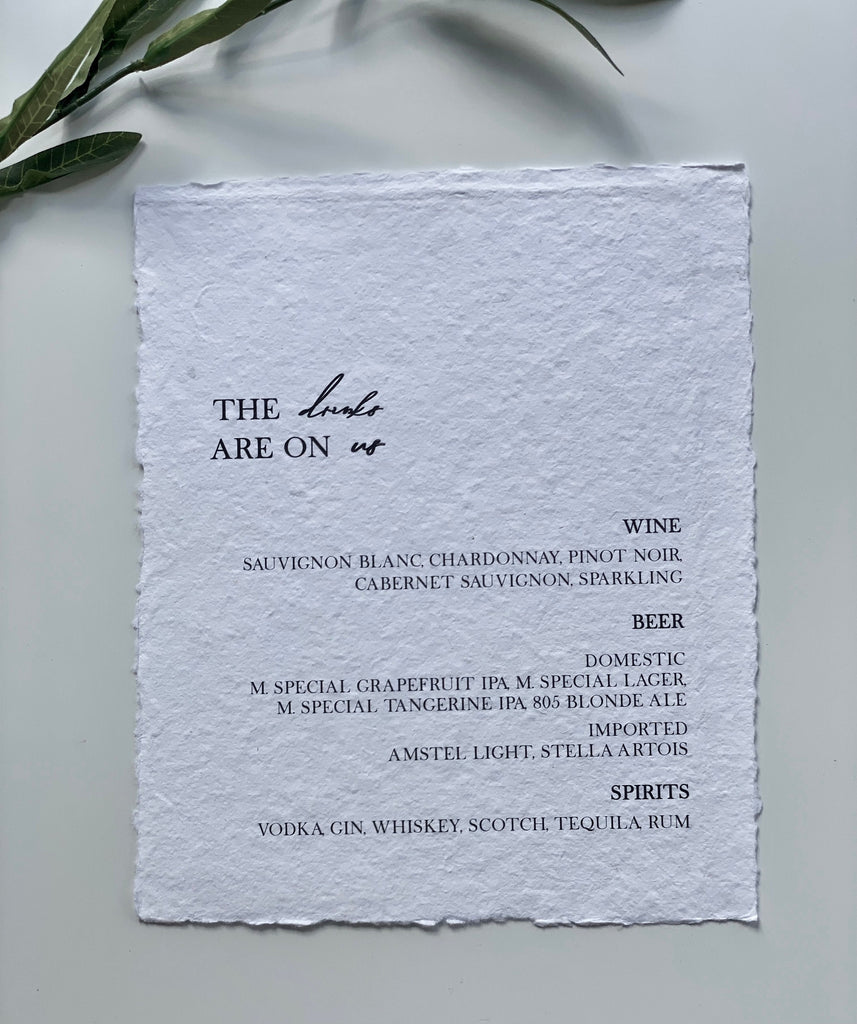 Wedding Bar Sign on Deckled Edge Cotton Rag!