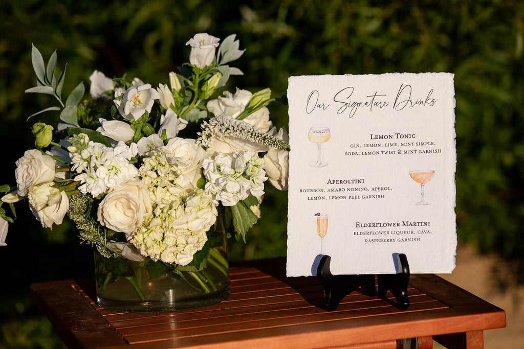 Wedding Signature Drink Sign Printed on Deckled Edge Cotton Rag!