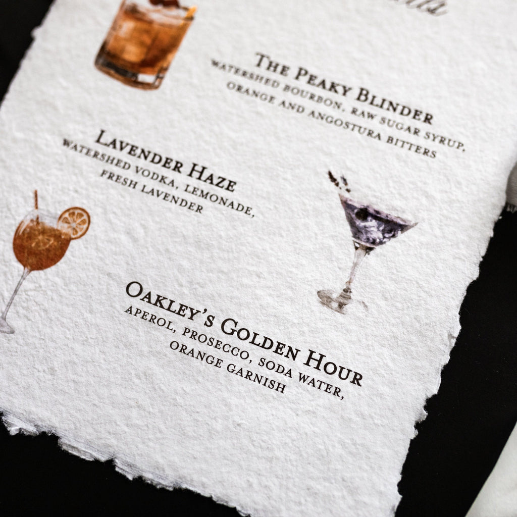 Custom Wedding Cocktail Sign- Deckled Edge 8in x 10in Signature Cocktail Sign