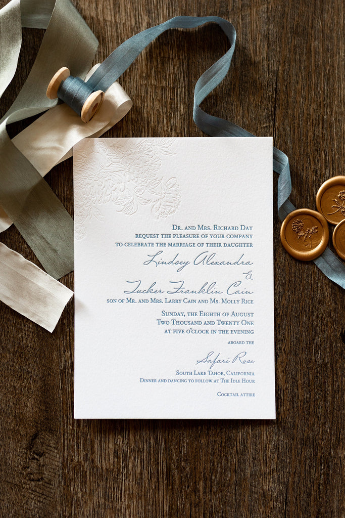 Letterpress Wedding Invitation- Blind Deboss Wedding Invitation- Deposit for Invitation