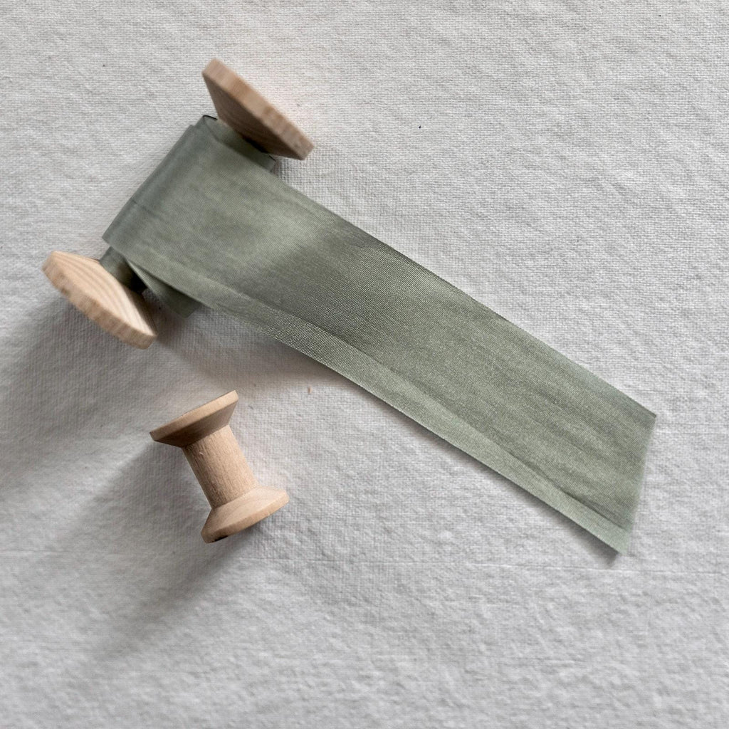 Sage Green Hand-Dyed Silk Ribbon - 1.25in - 100% Silk with Woven Edge