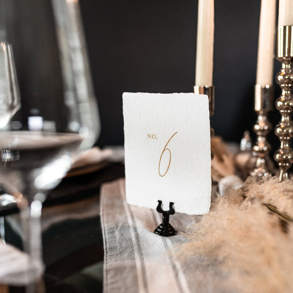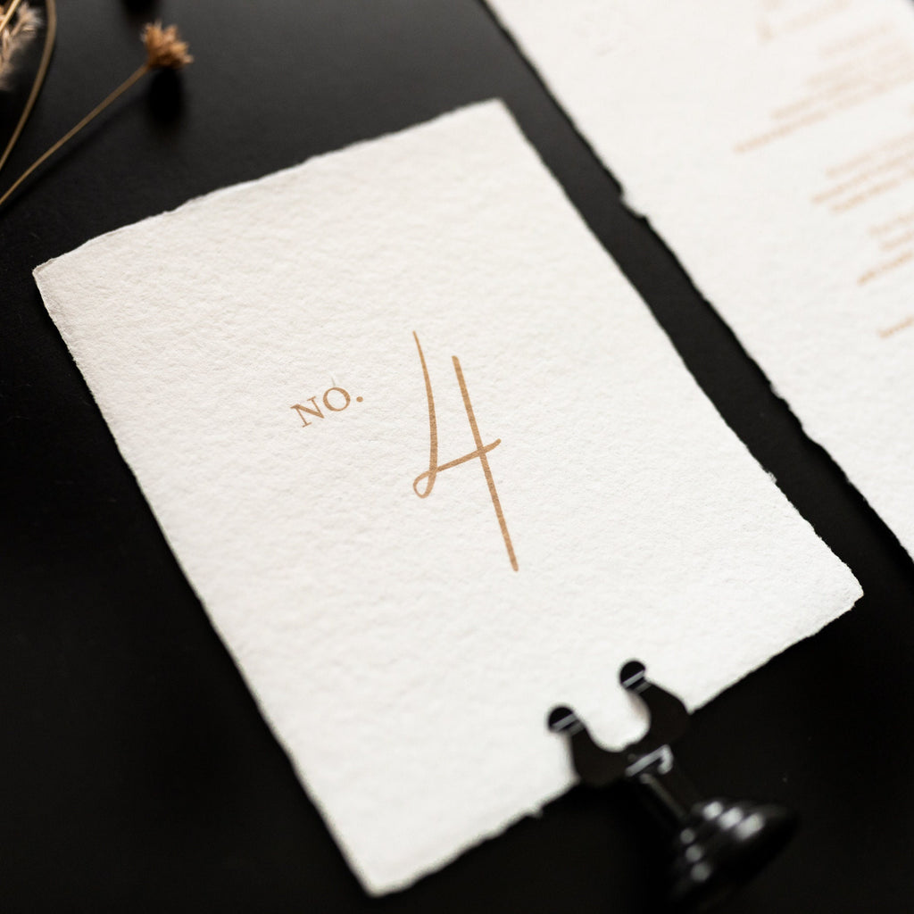 Gold Classic Table Number- Wedding Table Number on Deckled Edge Paper