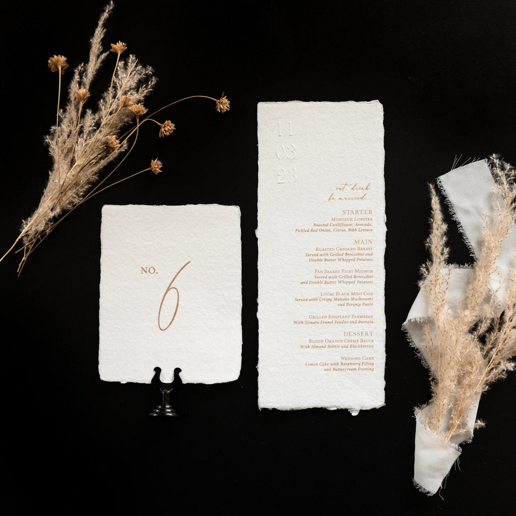 -200 gsm Deckled Edge Cotton with Matte Gold Ink Printing