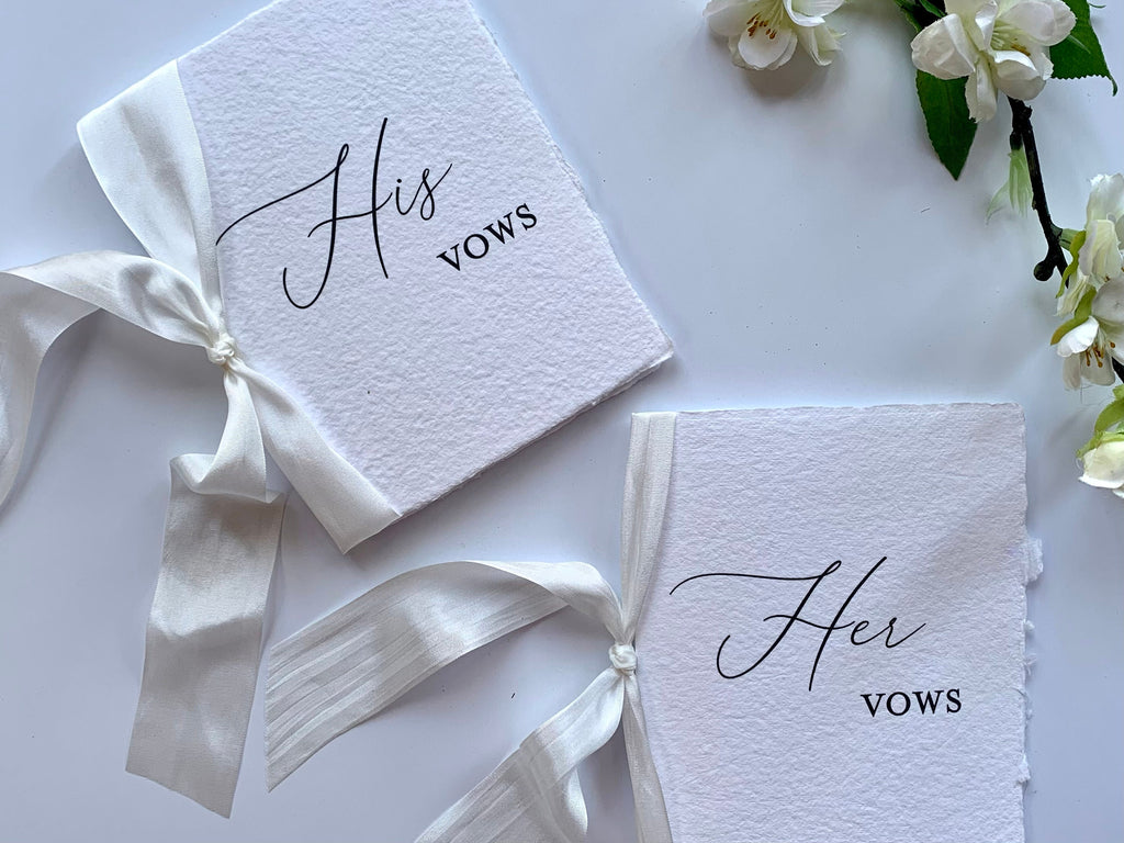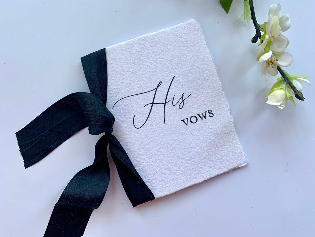 Wedding Vow Book- Deckled Edge Booklet- Handmade Paper with Silk Ribbon