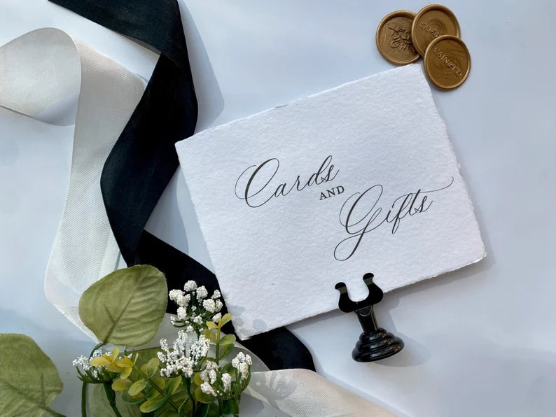 Wedding "Cards and Gifts" Elegant Sign - Handmade Deckled Paper- Wedding Signage