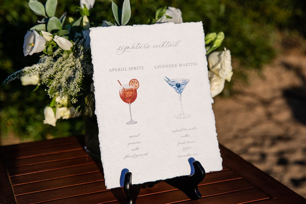 Cocktail Sign- Deckled Cotton Sign- Signature Drink Sign