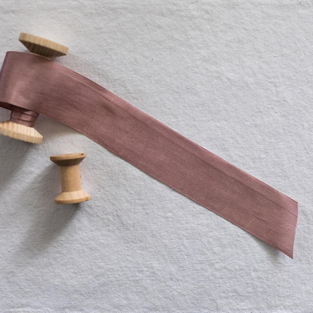 Dusty Rose Hand-Dyed Silk Ribbon - 1.25in - 100% Silk with Woven Edge